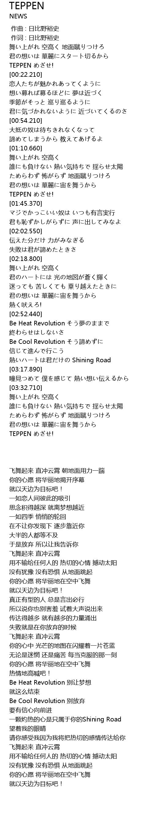 | [02:59.900] | Be Heat Revolution そう夢のままで |