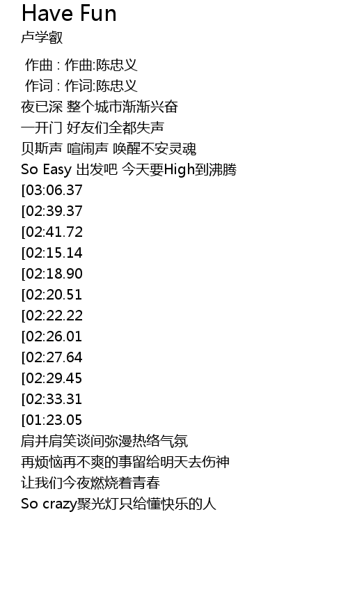 | [02:49.01][02:20.51][01:05.83] | Just wanna have some fun |