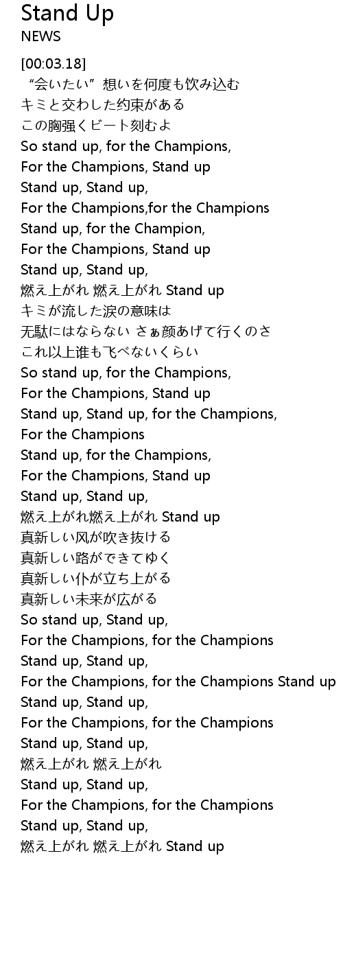 | [01:41.66] | For the Champions, Stand up |