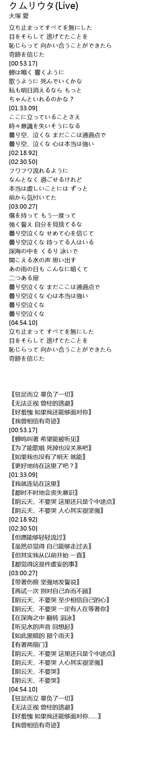 | [01:50.79] | 〖阴云天、不要哭 这里还只是个中途点〗 |