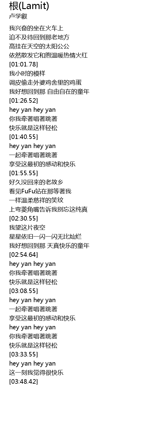 | [01:16.55] | 我好想回到那 自由自在的童年 |