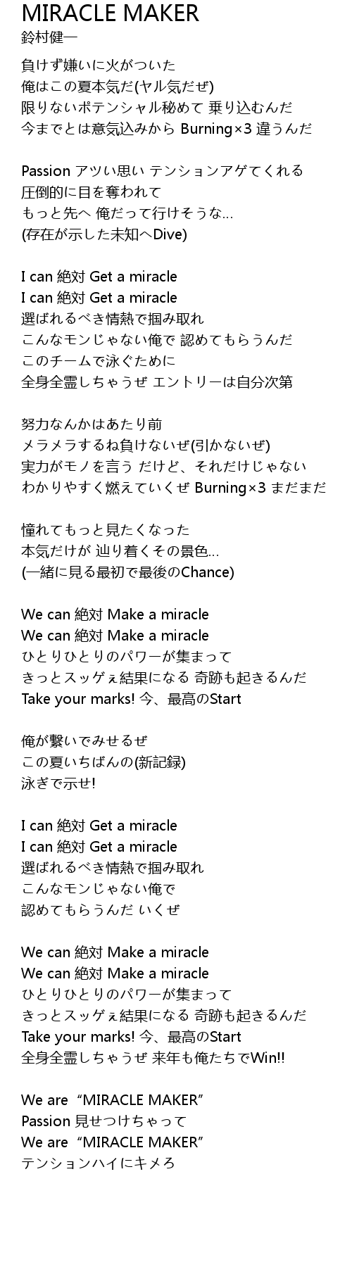 | きっとスッゲぇ結果になる 奇跡も起きるんだ | |