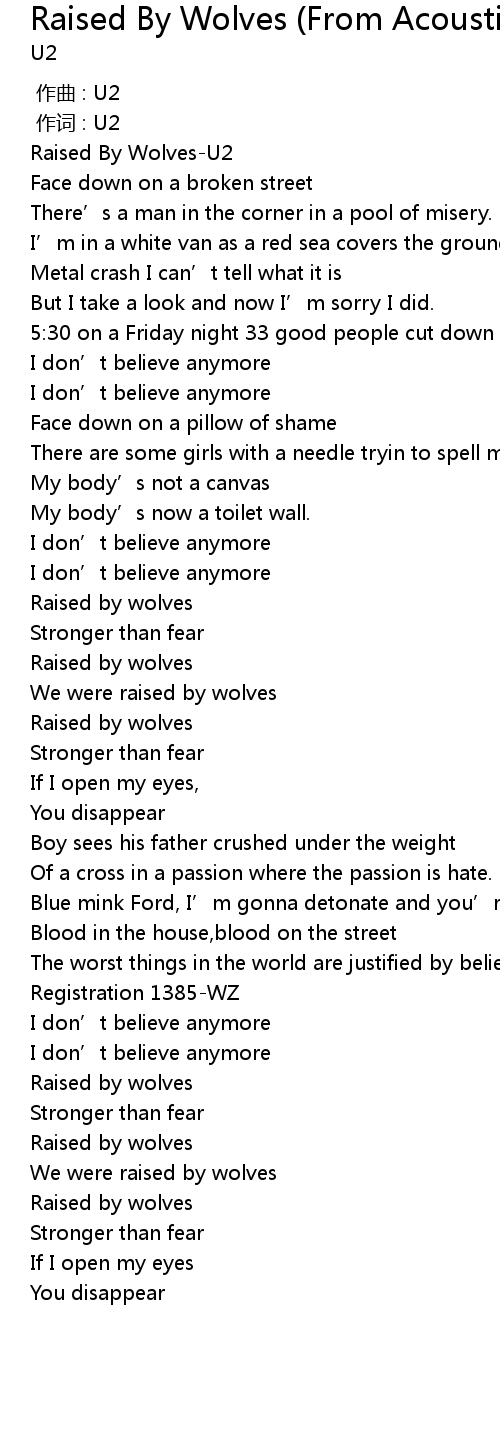| [02:40.60] | Raised by wolves |