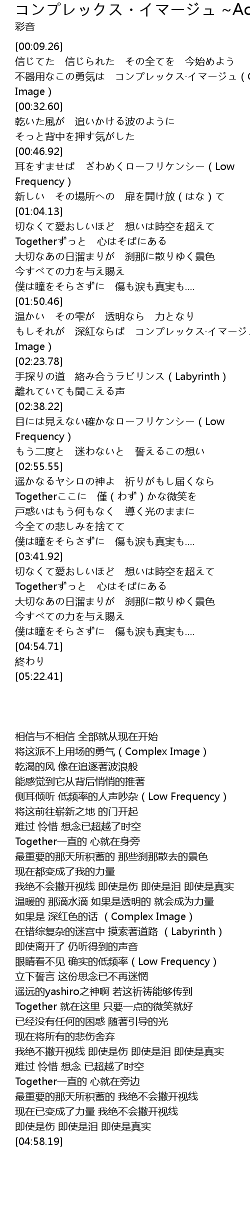 | [00:25.94] | 不器用なこの勇気は コンプレックス·イマージュ(Complex Image) |