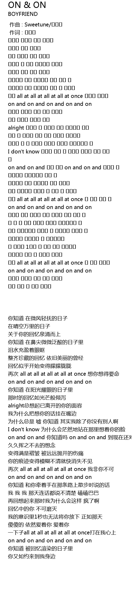| [01:28.740] | on and on and 알고 있니 on and on and 아직도 널 |