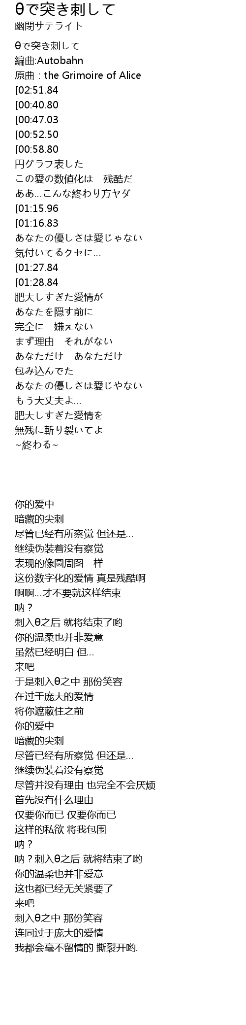 | [02:40.90][01:16.83] | θで突き刺して 終わらせてよ |