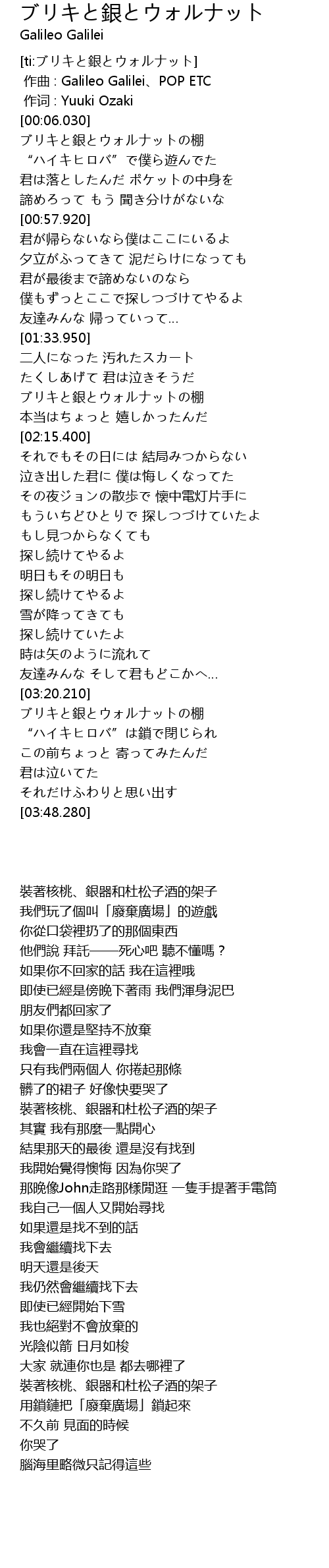 | [00:00.00] | 作曲 : Galileo Galilei、POP ETC |
