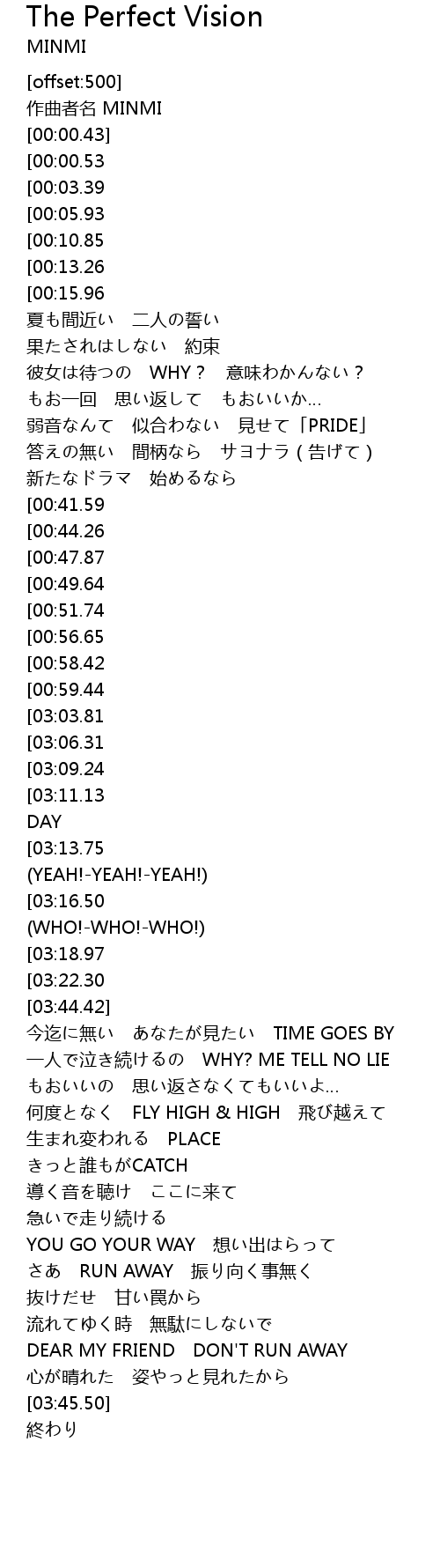 | [03:24.07][03:03.81][02:23.21][01:01.68] | GET UP & DANCE 見渡してみて |