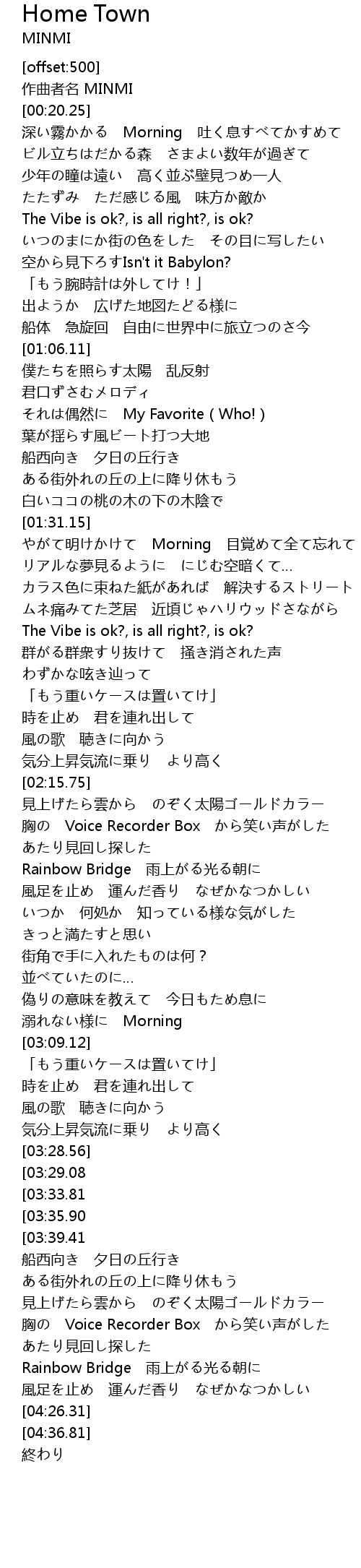 | [00:18.25] | 作曲者名 MINMI |