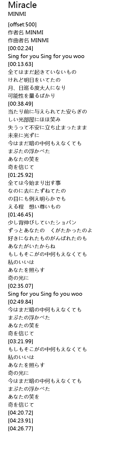| [00:00.84] | 作者名 MINMI |