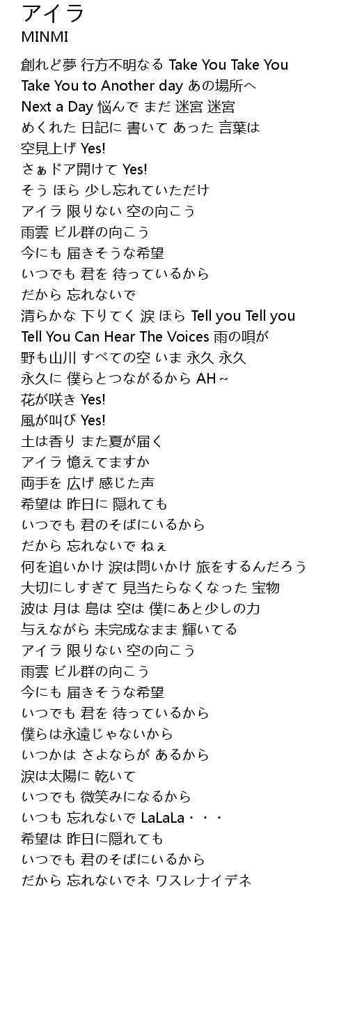 | 清らかな 下りてく 涙 ほら Tell you Tell you | |