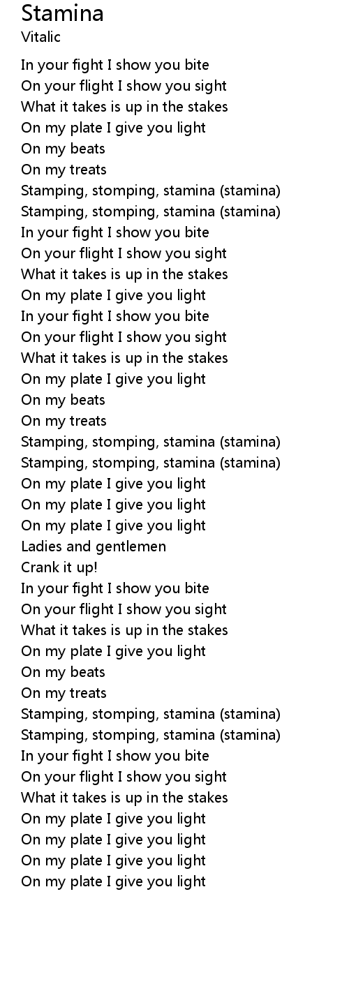 [02:39.19] Stamping, stomping, stamina (stamina)