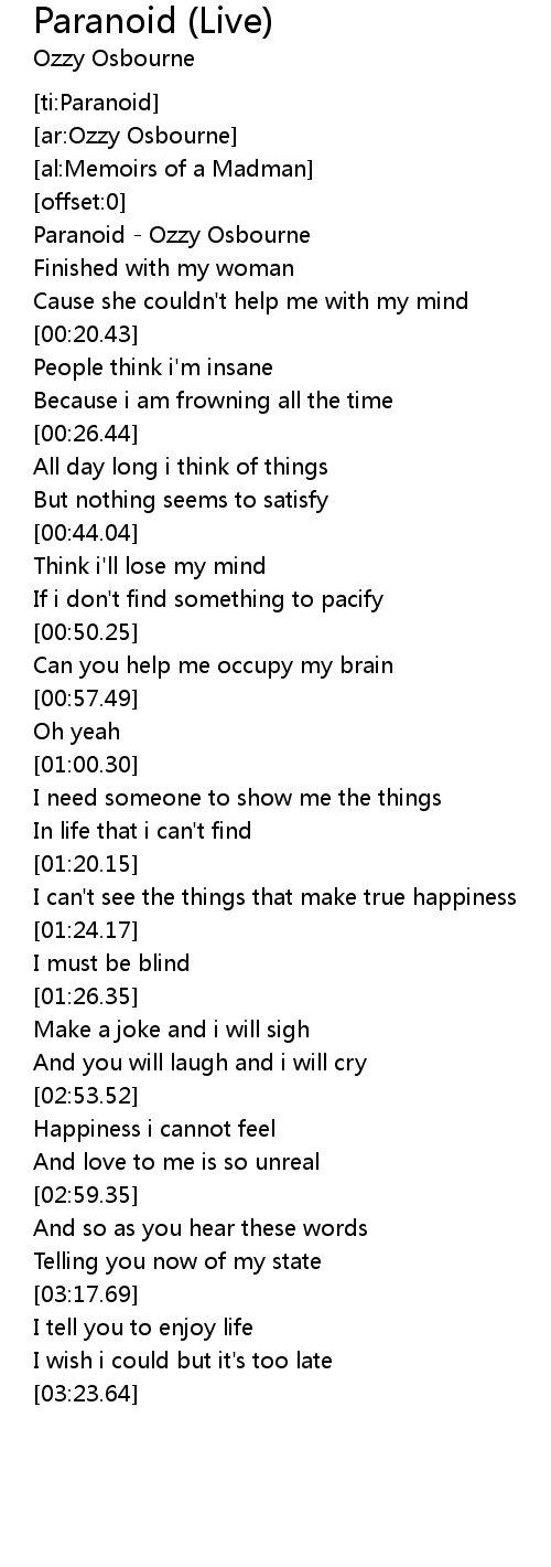 [00:01.40] Paranoid - Ozzy Osbourne