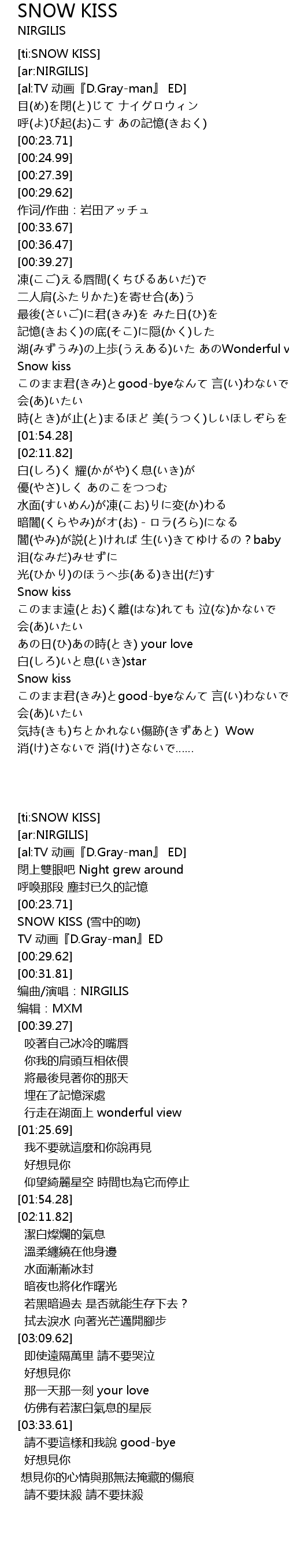| [03:33.61] | Snow kiss |
