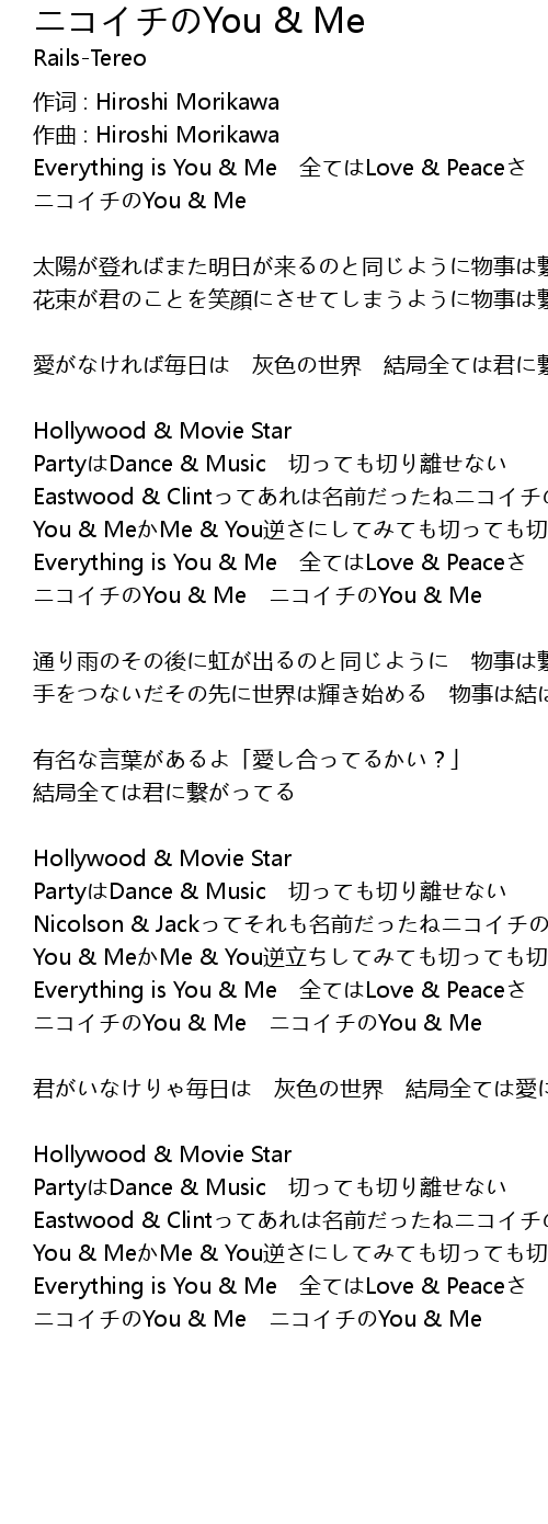 | Nicolson & Jackってそれも名前だったねニコイチのYou & Me | |