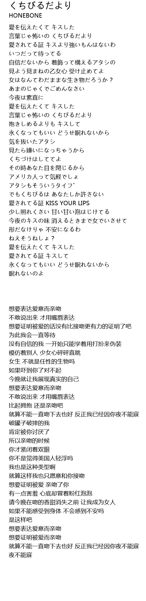 | [01:18.570] | 言葉じゃ怖いの くちびるだより |