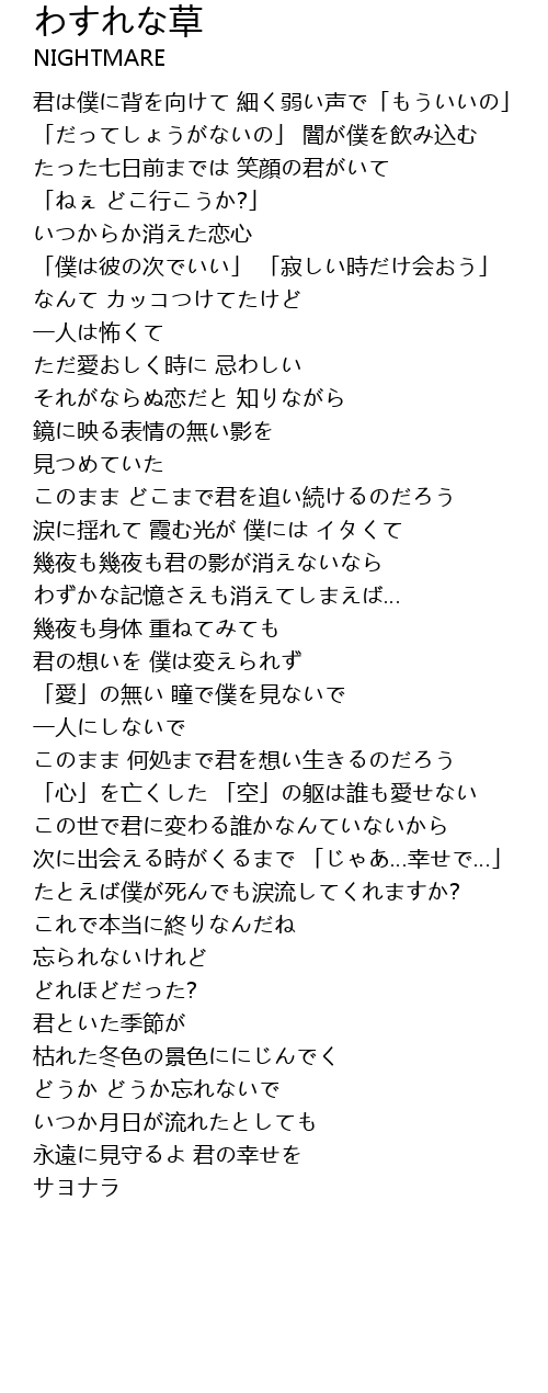| 涙に揺れて 霞む光が 僕には イタくて | |