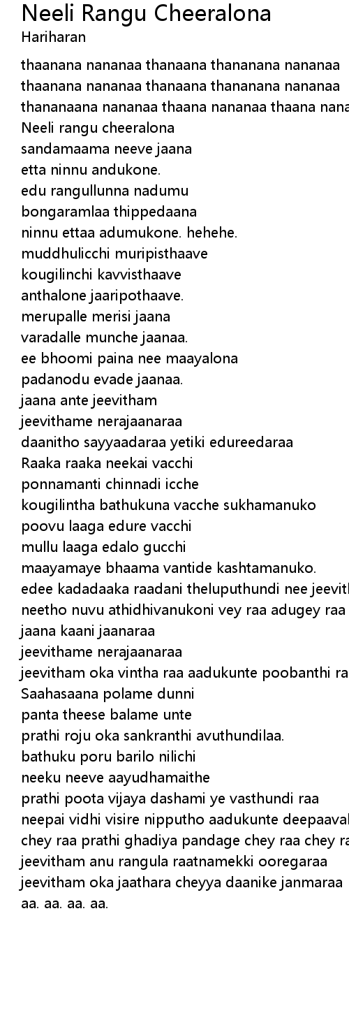 jeevithame nerajaanaraa |