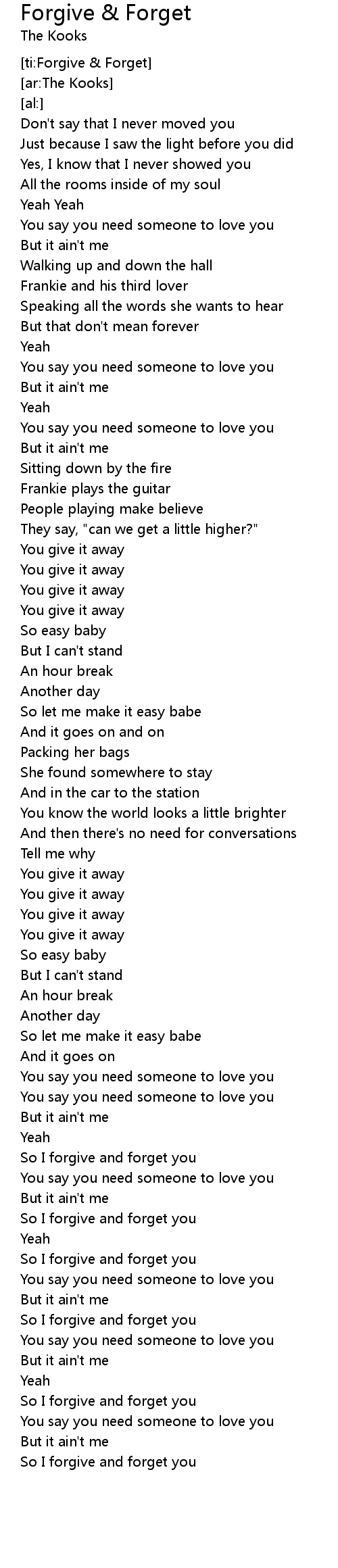 So I forgive and forget you |