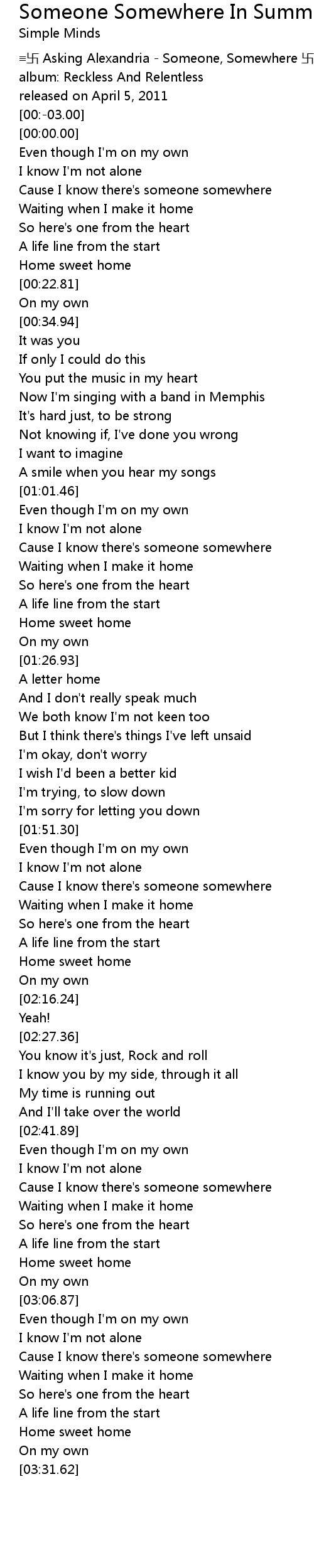 | [00:-06.00] | wan Asking Alexandria Someone, Somewhere wan |