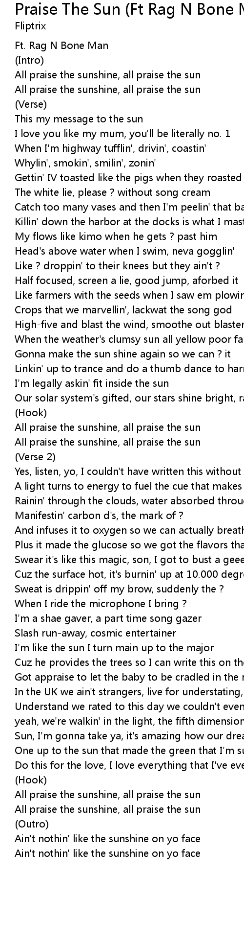 One up to the sun that made the green that I'm suddenly blazin'(?) |