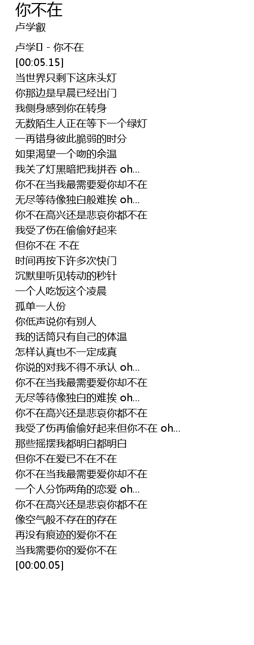 | [00:02.15] | 卢学� - 你不在 |