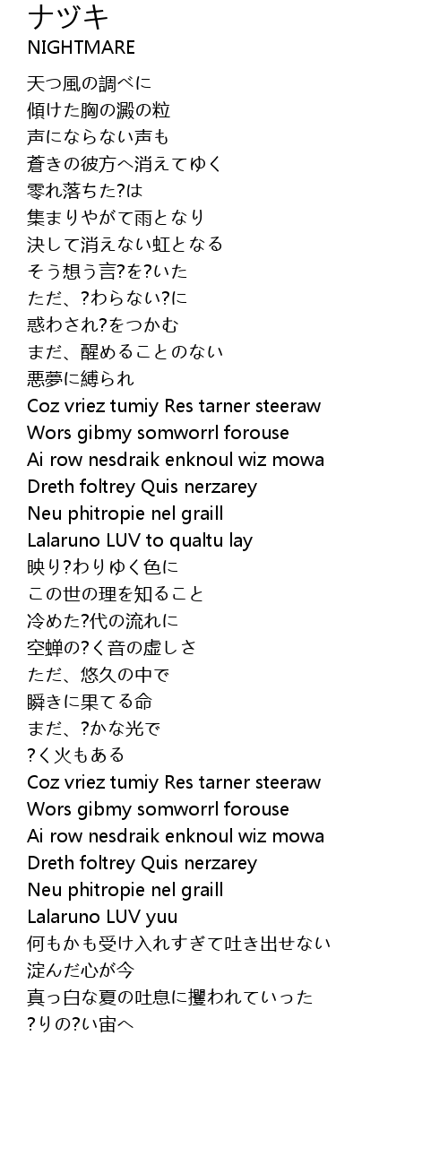 | [01:33.130] | Dreth foltrey Quis nerzarey |