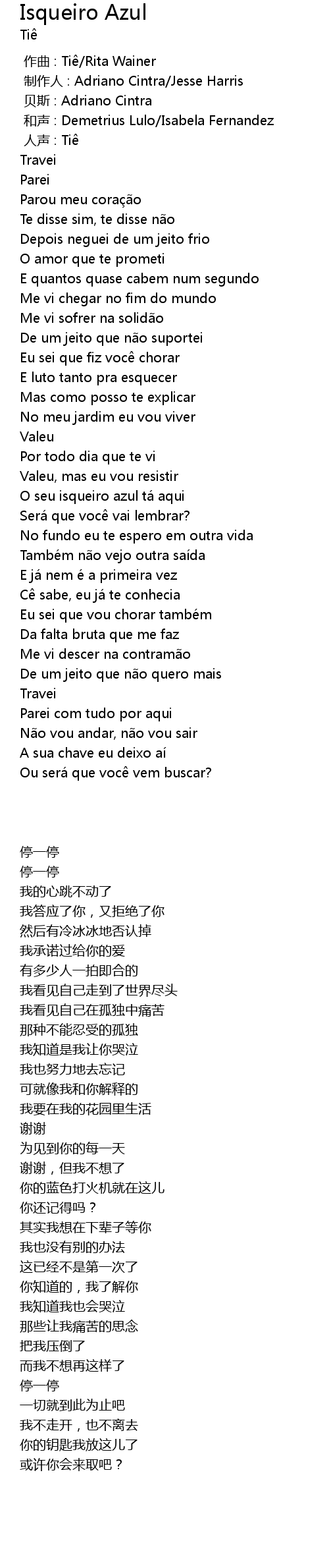 | 歌曲 | Isqueiro Azul |