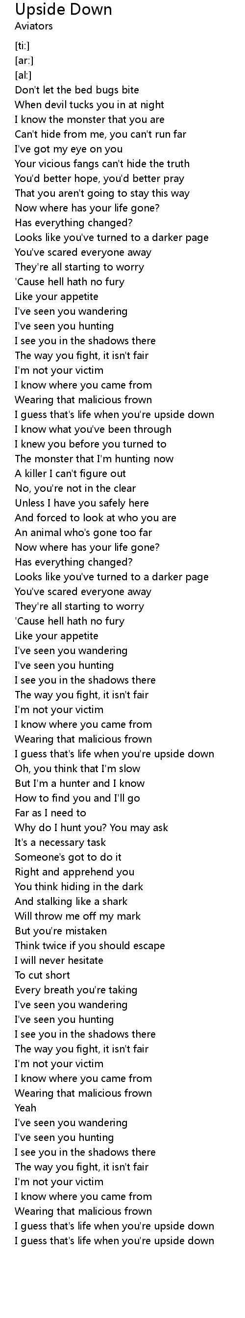 I guess that's life when you're upside down |