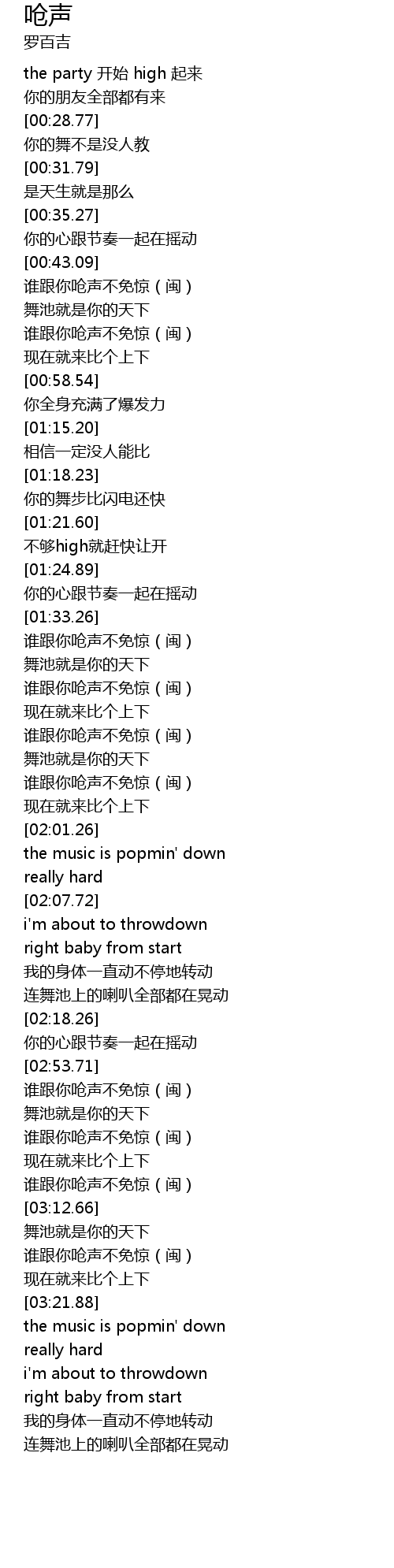 | [00:23.34] | the party kāi shǐ high qǐ lái |