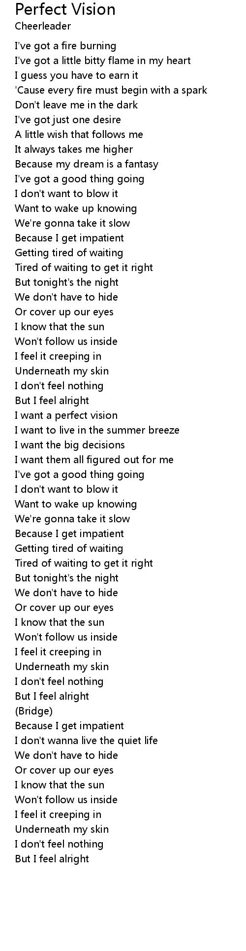 But I feel alright |