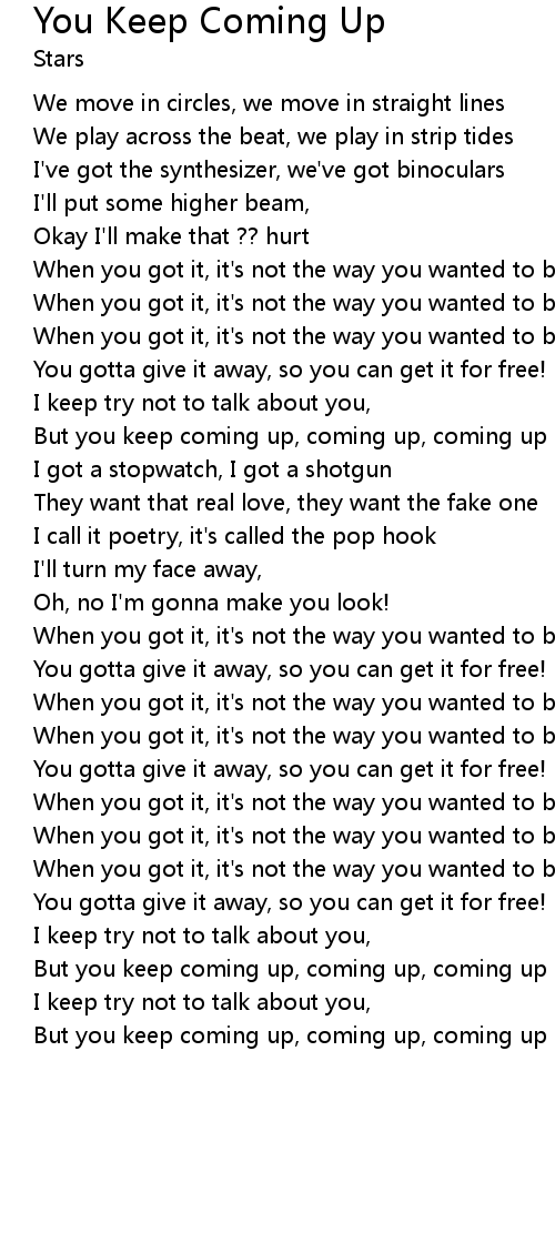 But you keep coming up, coming up, coming up |