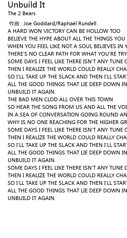 | 歌曲 | Unbuild It |