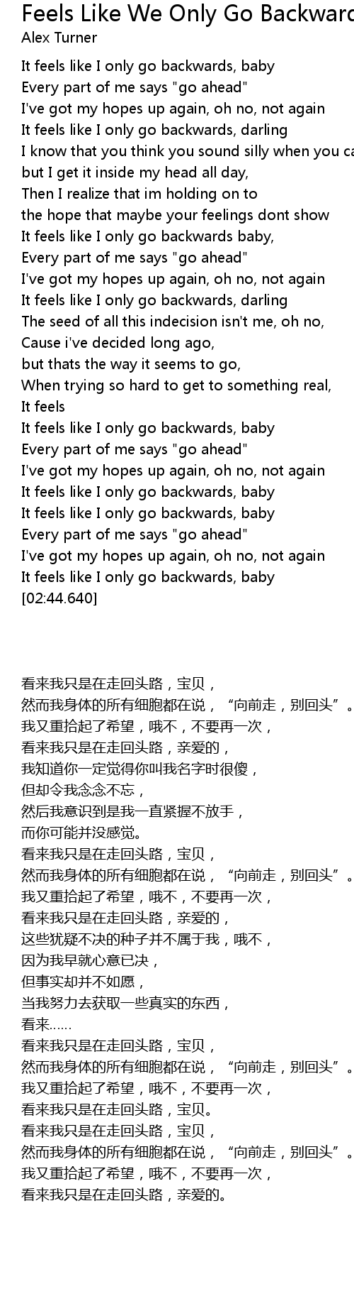 It feels like I only go backwards, baby |