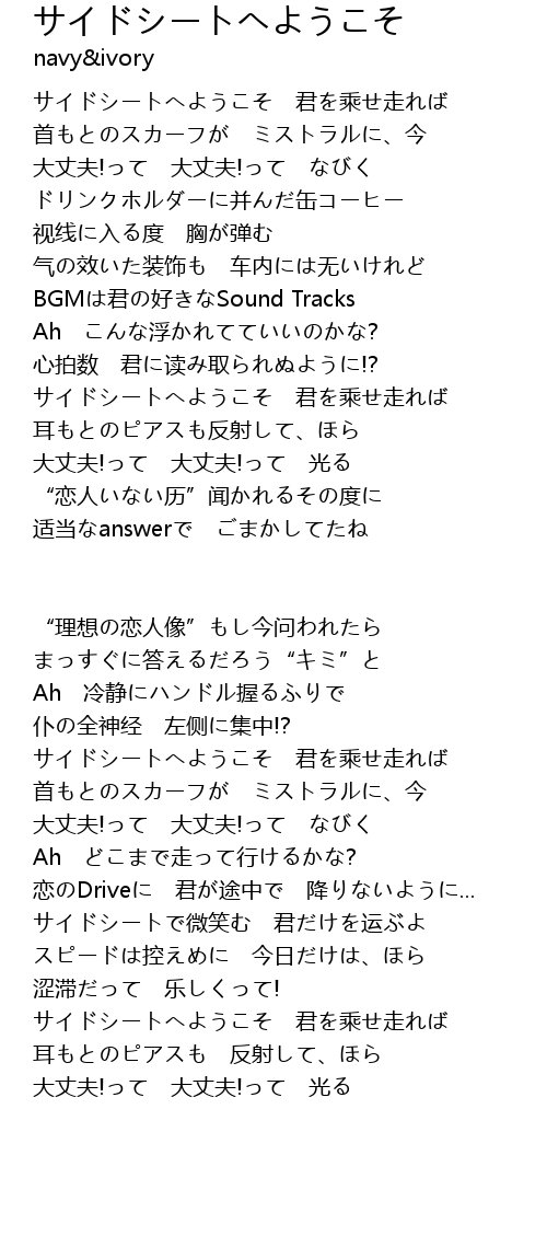 | 歌曲 | サイドシートへようこそ |