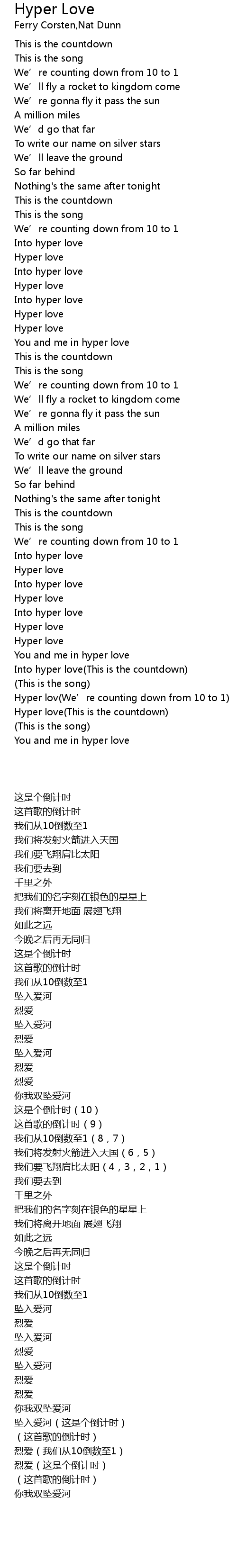 | [03:11.08] | Hyper lov We' re counting down from 10 to 1 |