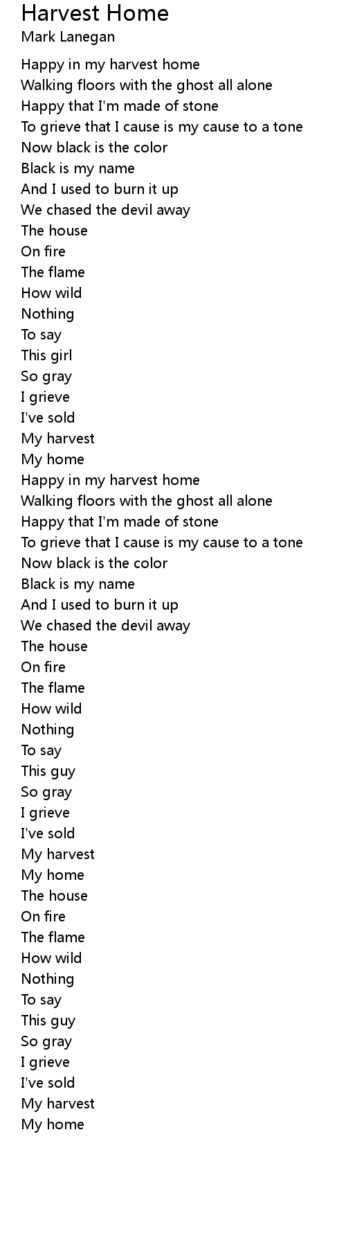 Harvest Home 歌词