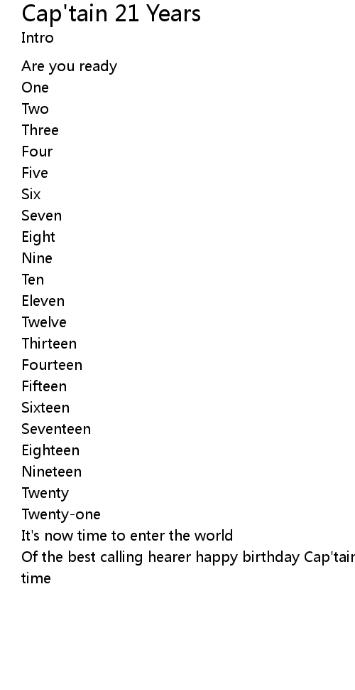 | [01:16.05] | Of the best calling hearer happy birthday Cap'tain 21 years to good time |