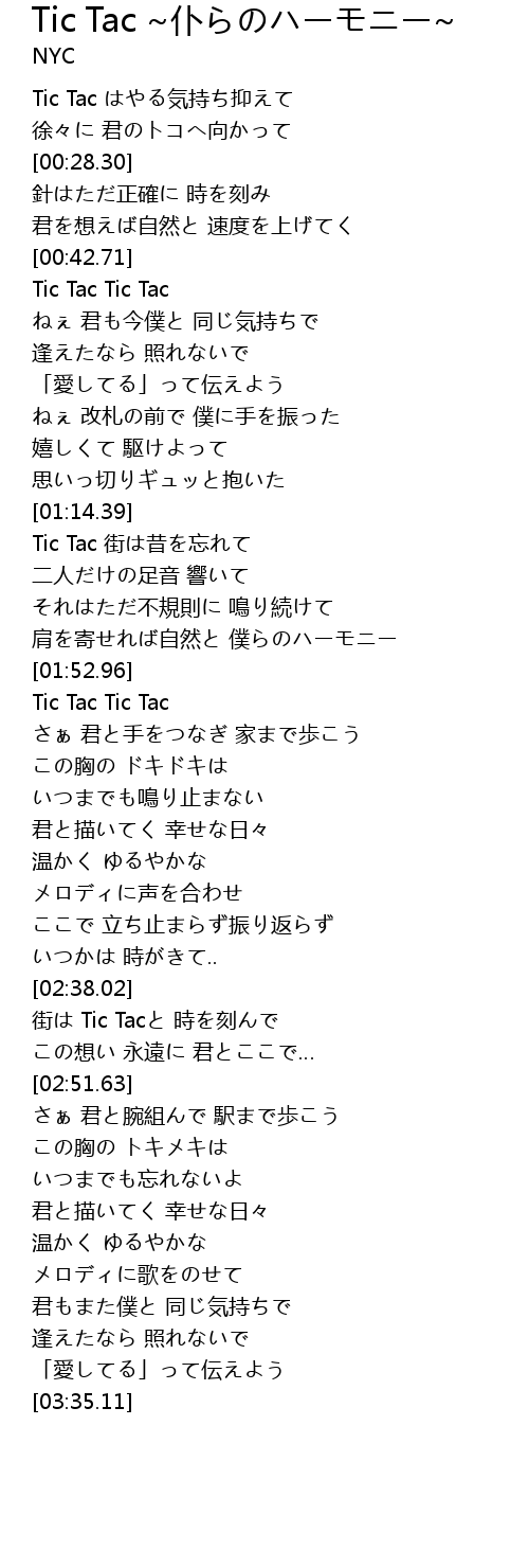 | [02:38.99] | 街は Tic Tacと 時を刻んで |