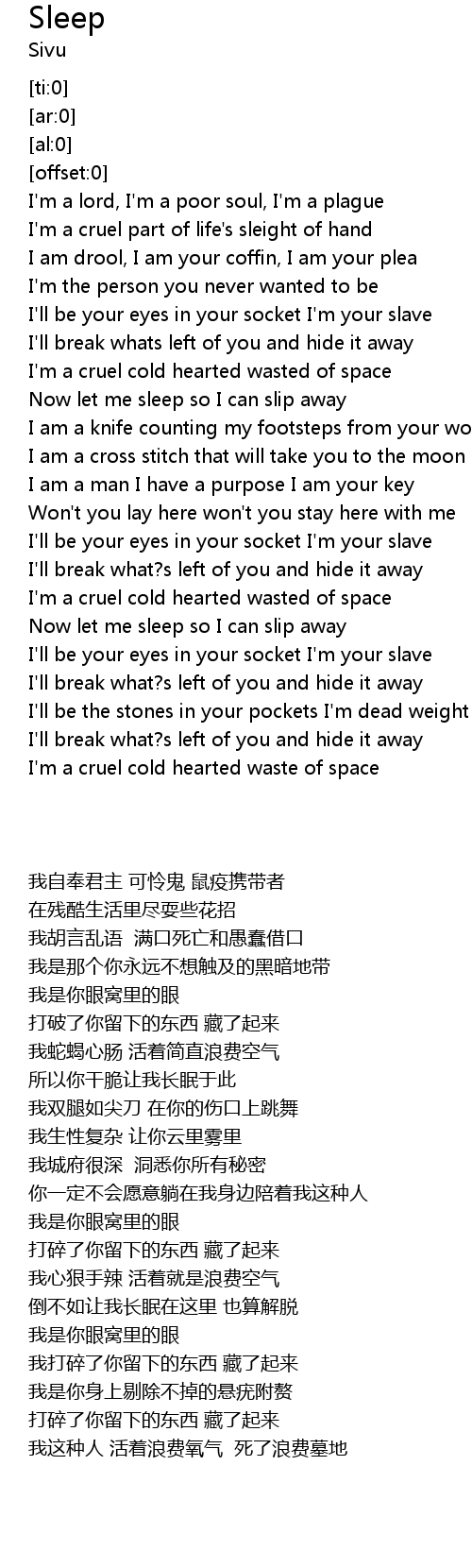 Now let me sleep so I can slip away |