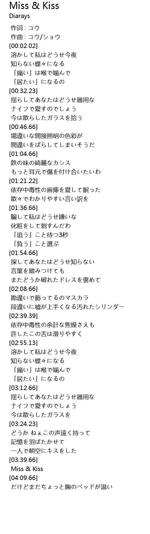 | [04:05.79] | Miss & Kiss |