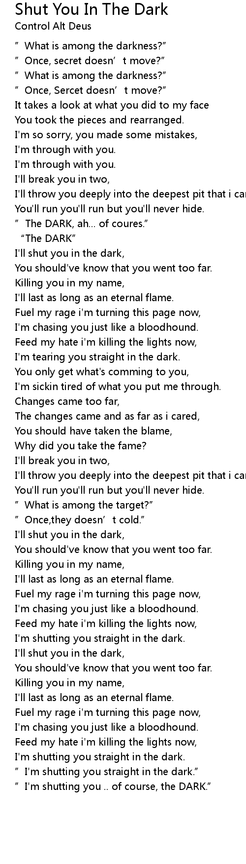 | [05:09.282] | " I' m shutting you straight in the dark." |