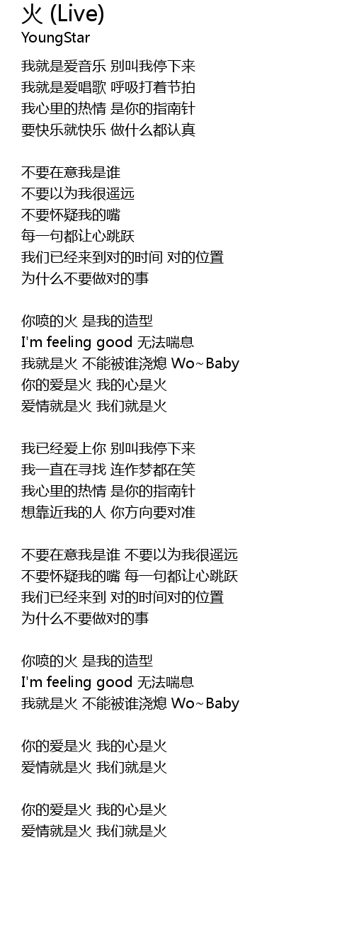 | 我就是火 不能被谁浇熄 Wo~Baby | |