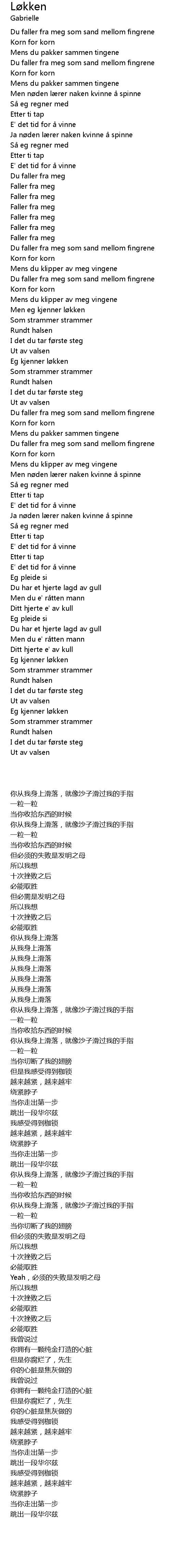 | [00:15.21] | Du faller fra meg som sand mellom fingrene |