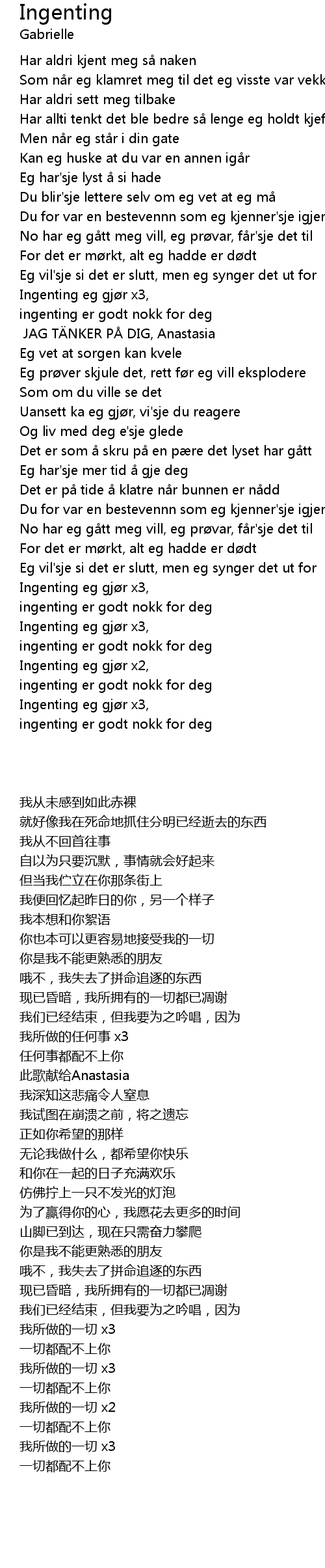 | 歌曲 | Ingenting |