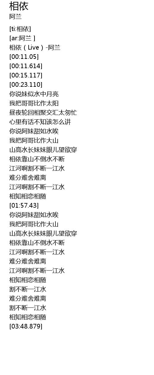 | [00:01.404] | 相依(Live)-阿兰 |