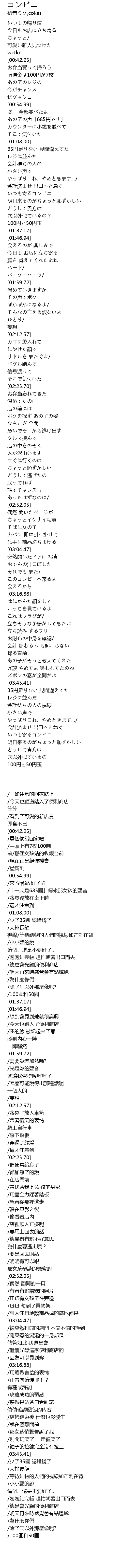 | [00:32.86] | /今天也順道踏入了便利商店 |