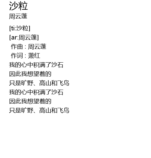 | [00:49.488] | wǒ de xīn zhōng jī mǎn le shā shí |