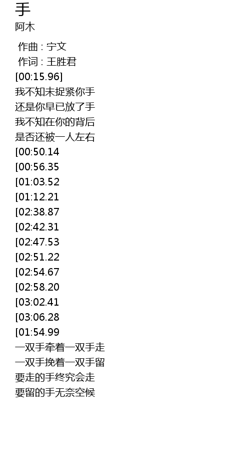 | [03:19.99] | 一双手挽着一双手留 |