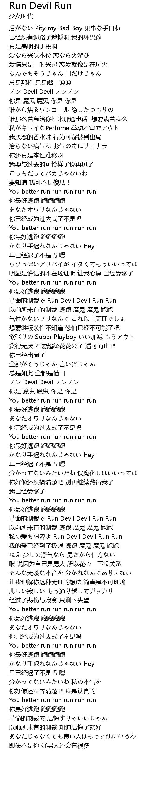 | [02:20.090] | 私の爱も限界よ Run Devil Devil Run Run |